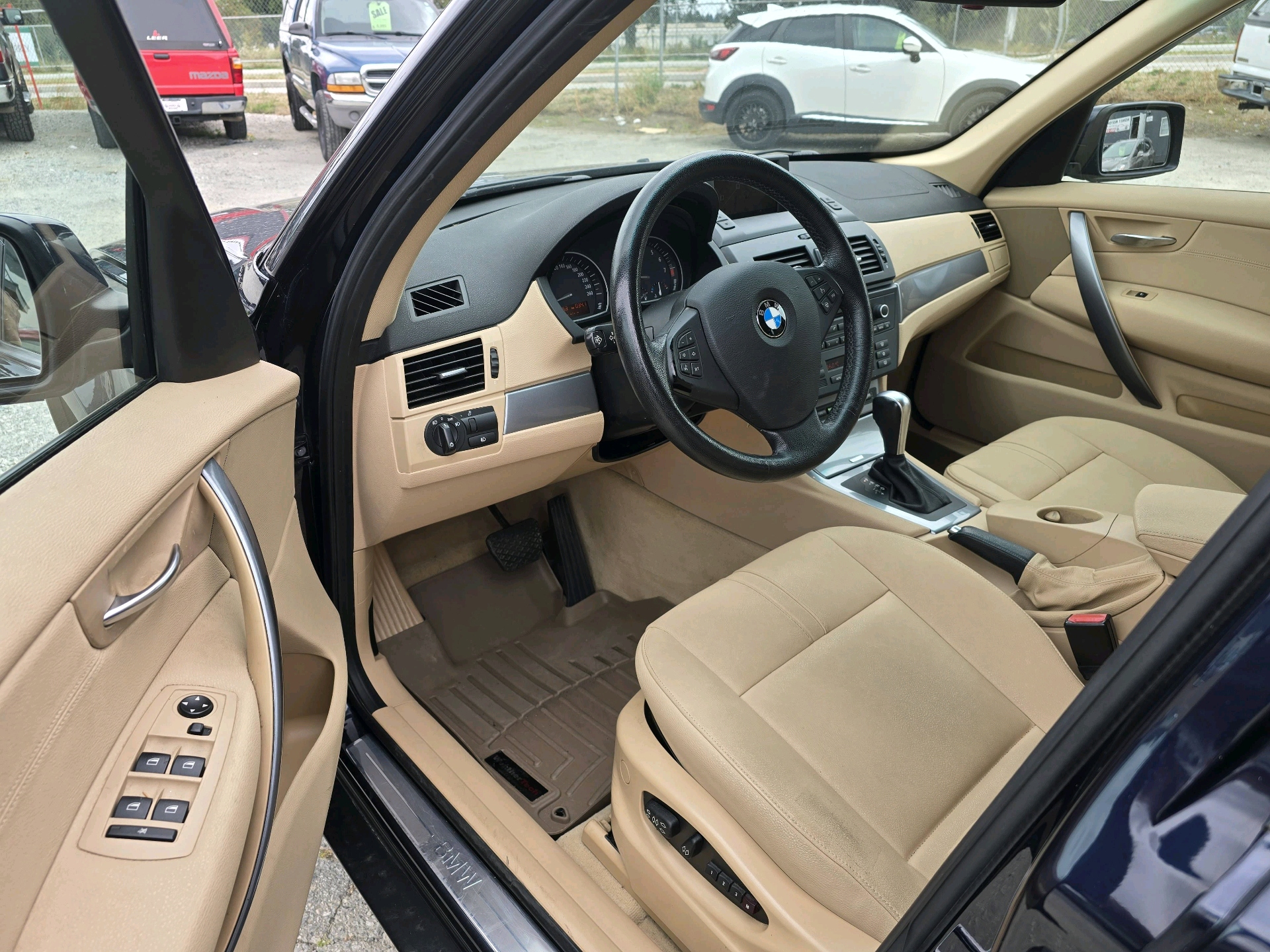 Introducing the 2009 BMW X3 XDrive30i for sale! This stunning SUV features a Monaco Blue exterior paired with Sand Beige Leatherette, and both the exterior and interior are in superb condition! Powered by a 3.0L L6 DOHC 24-valve engine with 264 HP, this AWD vehicle has only 108k km, a clean title, 2 owners, and is local BC! It's loaded with features including navigation, a power driver seat with 3 memory settings, heated seats, a heated steering wheel, a panoramic sunroof, and park distance control (front and rear). Plus, it comes with an additional set of tires on BMW rims (General, Altimax Arctic snow tires in like-new condition) and other accessories like roof rails with crossbars and Weather Tech all-season floor mats and trunk tray. Financing is available starting from 0%, trades are welcome, and every vehicle includes a $595 doc fee with a 6-month warranty as part of our October month special—your peace of mind is our priority! Contact us today! Sold by Honey Motors Inc. (DL41834).